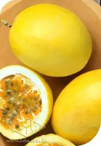 - Frutos grandes, de casca amarela e polpa alaranjada