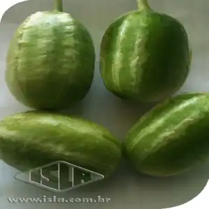 Fruto oblongo e liso.